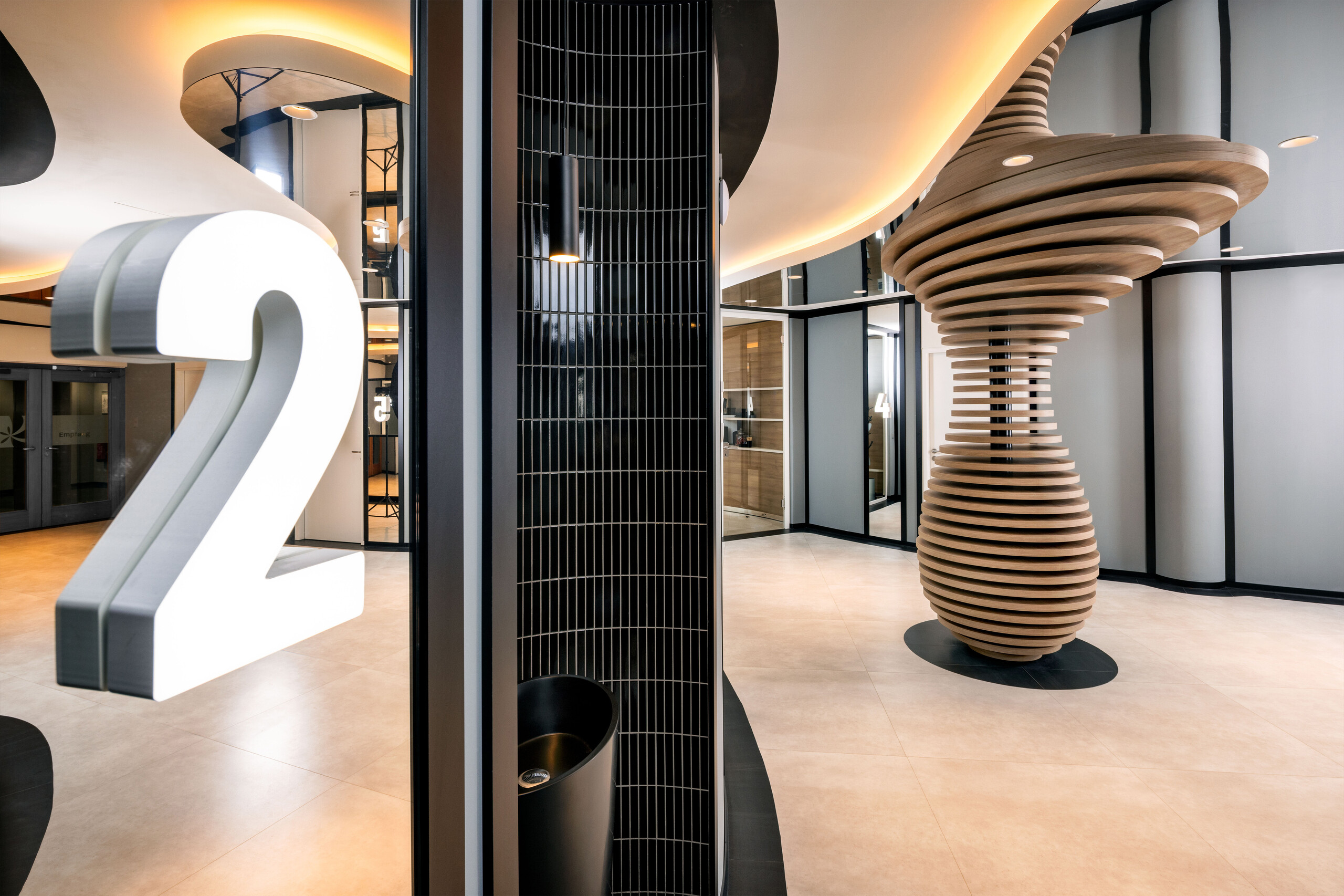 entstand ein individuelles Gestaltungskonzept, das die prägnante Gebäudehülle der Gehry-Bauten respektiert und zugleich maßgeschneiderte Innenräume für den Klinikalltag schafft.