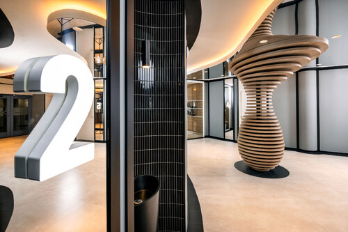 Die organisch geprägte Formensprache der Außenarchitektur wurde daher auch zur Leitlinie für die neue Raumorganisation. Der großzügige Empfang mit elegantem Welcome Desk begrüßt den Patienten mit großzügiger Offenheit und einem Design, welches die geschwungene Gebäudearchitektur elegant betont. Der sich anschließende Wartebereich wurde ebenfalls offen und hell gestaltet und bietet dem Patienten viel Raum und Rückzug. Während die Patientenzimmer mit Blick zum Hafen ein komfortables Hotel-Feeling ausstrahlen, sind die Behandlungsräume jeweils vor allem von einem individuellen Tageslichtkonzept geprägt.